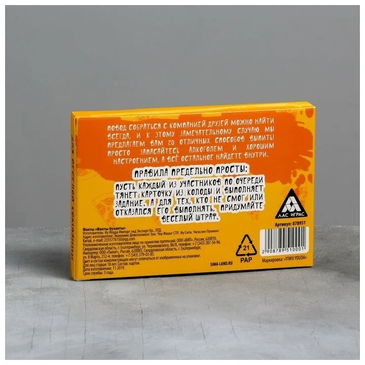 Купить игра для компании "фанты буханты" 20 карт от 100 руб. с доставкой до пункта выдачи в Сорске. Интернет магазин ДекаМаркет. Оплата при получении.