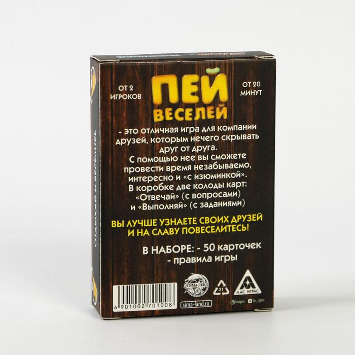 Купить игра для компании "пей веселей" 50 карт от 180 руб. с доставкой до пункта выдачи в Сорске. Интернет магазин ДекаМаркет. Оплата при получении.