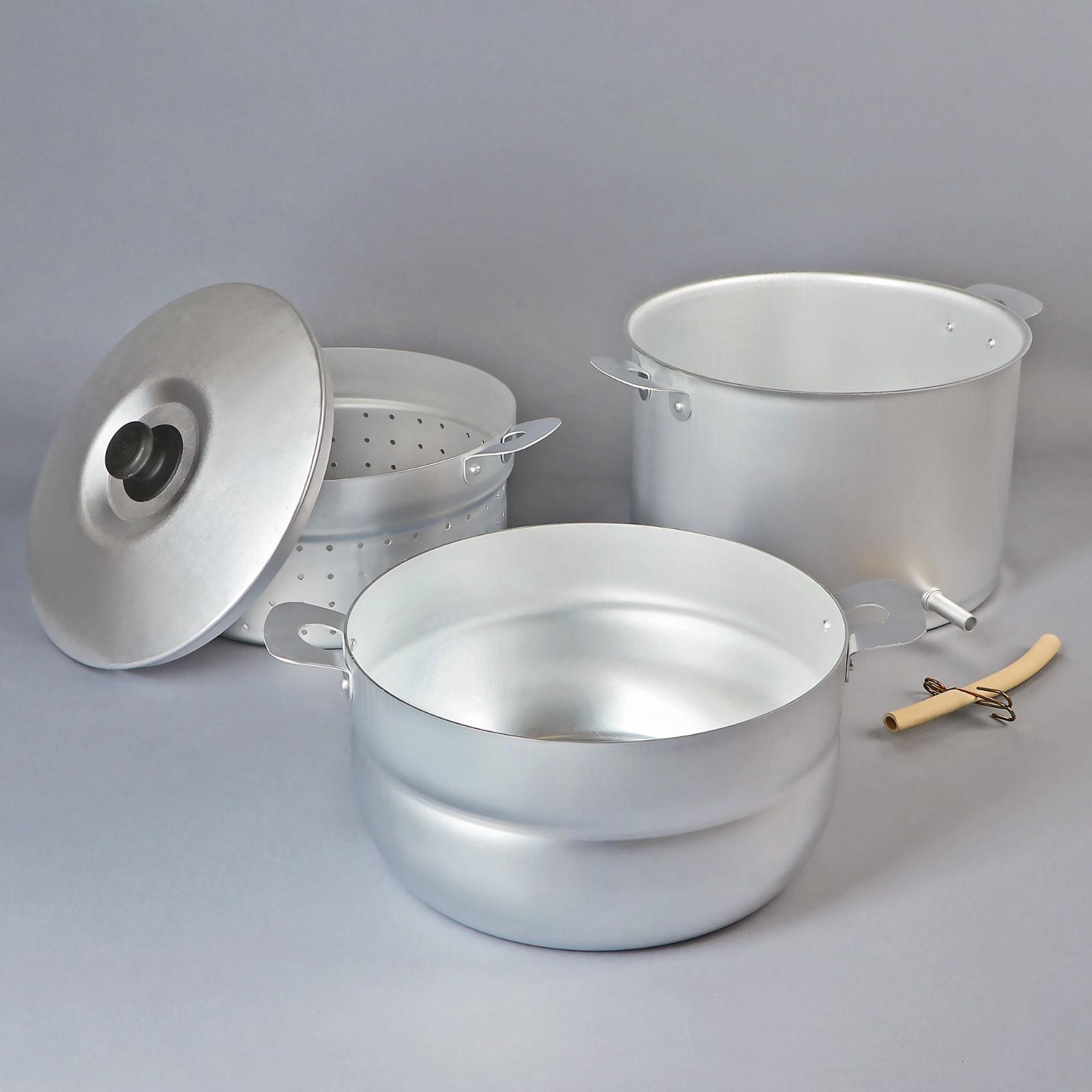 Комплектация: крышка; дуршлаг; сборник сока; отводная трубка с зажимом; кастрюля.